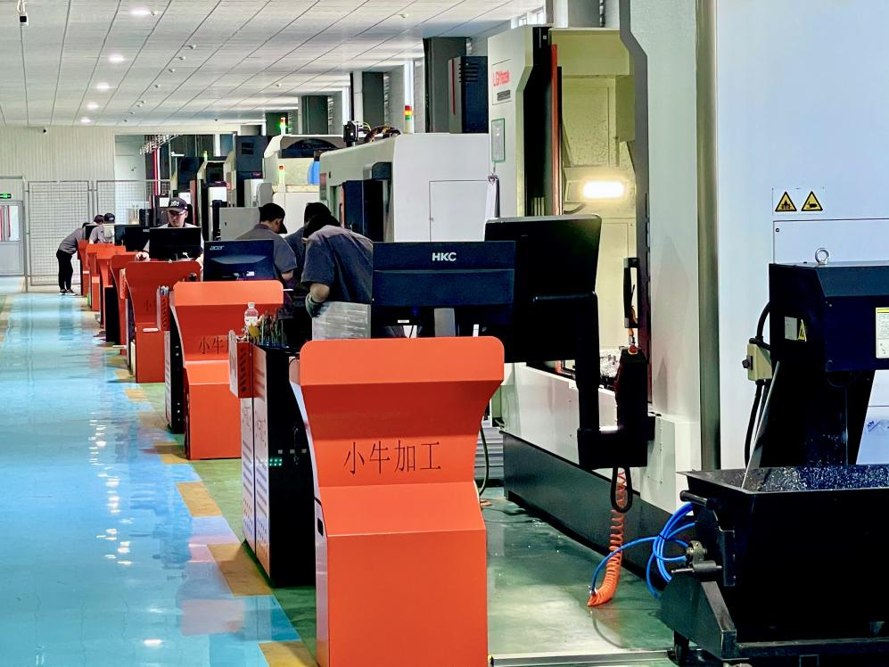 The new workshop covers an area of 8,000 square meters, and the total number of people in the workshop is about 180. The workshop mainly produces parts and equipment racks for Xiaoniu equipment, with a material room, milling machine, sheet metal, turning mill, machining center, and various functional offices. The layout of the workshop space is reasonable, the work of each production link is orderly, and the collaboration is convenient;