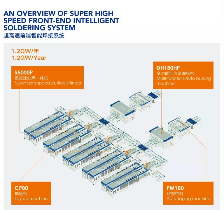 At the same time, it will also bring XN’s intelligent welding mass production solution, which is an ultra-high-speed front-end intelligent welding system independently developed and produced by XN Automation, including S5000P ultra-high-speed marking and welding all-in-one machine, CP80 typesetting machine, DH180HP convergence belt Welding machine, PM180 tape sticking machine, CF100 string rework machine, the compatible cell size of this system is 166-230mm, and the compatible grid line number is 9BB-20BB.In addition, the 1.2GW production line configuration requires only 7 people per shift, which has significant advantages such as high automation, strong compatibility, and high reliability.