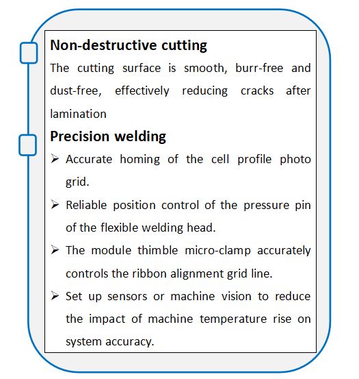 The S5000P ultra-high-speed scrsibing and welding all-in-one machine uses the combination of non-destructive scribing technology and precise stringing solutions to perfectly match the ultra-high productivity and high reliability, reduce the scribing damage rate, the return rate of components, and improve the efficiency of the component production process.The advantages of S5000P are brought into full play.Provide strong technical support for the future development of intelligent production lines and more efficient component layouts.